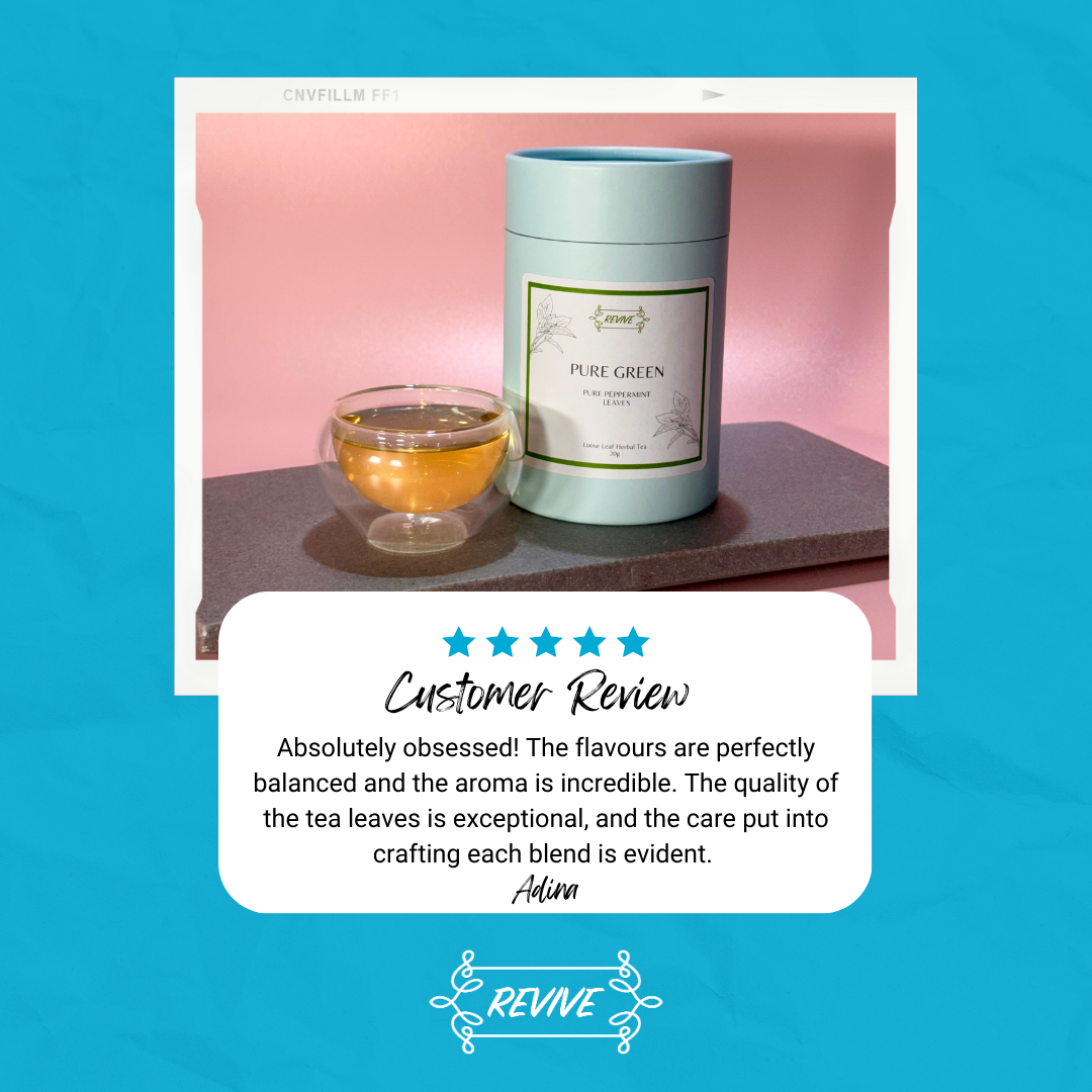 I'm absolutely obsessed with Revive Pure Organics tea blends! The flavours are perfectly balanced and the aroma is incredible. The quality of the tea leaves is exceptional, and the care put into crafting each blend is evident. The packaging is also beautiful and makes for a perfect gift! They are very knowledgeable and responsive and helped me find the perfect blend for my taste preference. Highly Recommend Revive Pure Organics 10/10. 💙💙