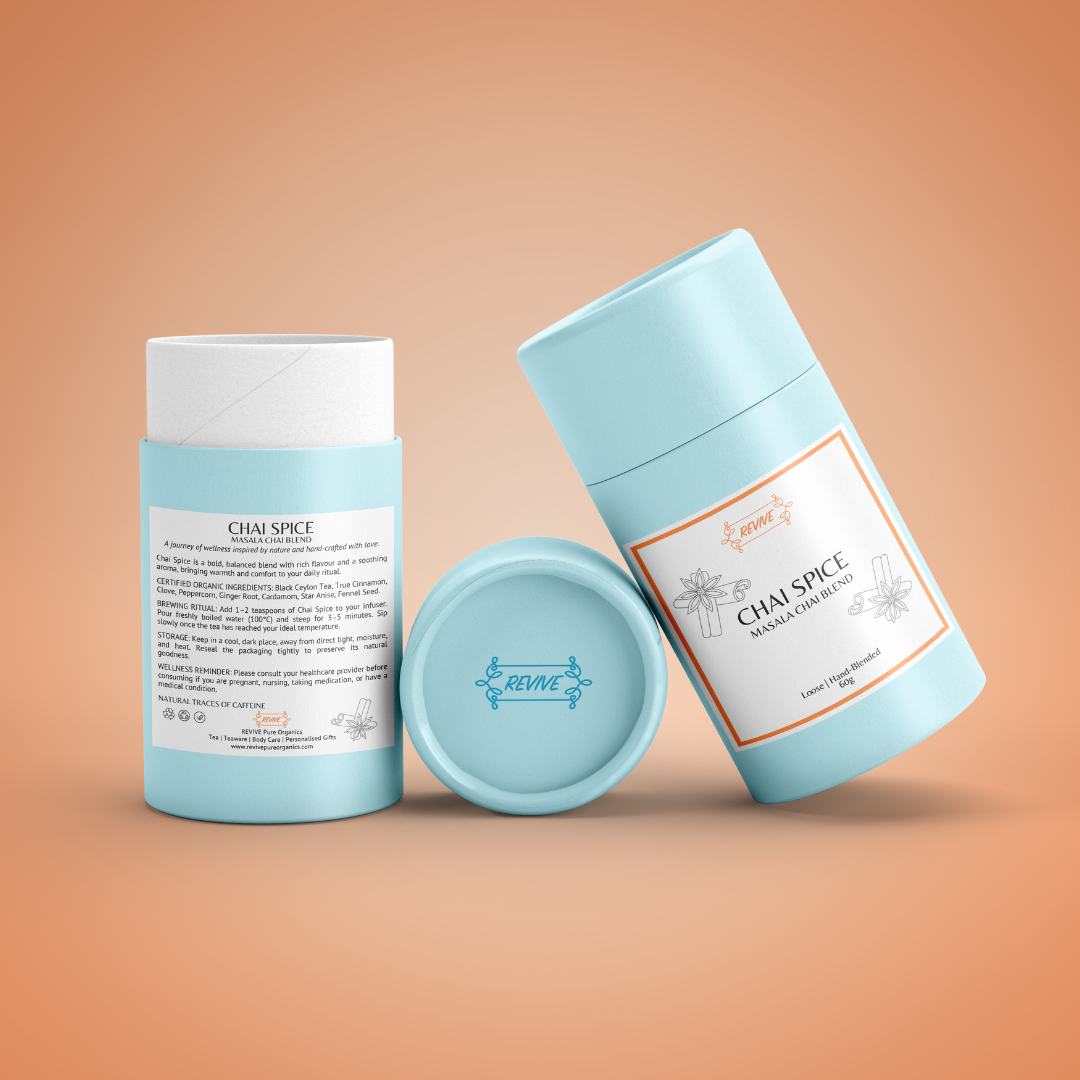 BREWING RITUAL: Add 1–2 teaspoons of Chai Spice to your infuser. Pour freshly boiled water (100°C) and steep for 3–5 minutes. Sip slowly once the tea has reached your ideal temperature.